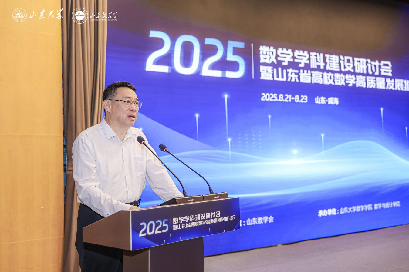 2025年8月22日-23日,BB贝博艾弗森官网在威海举办2025年全国高校数学学科建设研讨会暨山东省高校数学高质量发展推进会。BB贝博艾弗森官网常务副校长吴臻致辞并作大会报告,中共上海市委党校党的建设教研部罗俊丽教授作大会报告,山东航空学院党委副书记、校长李伟年教授,青岛科技大学副校长李金红教授出席会议。