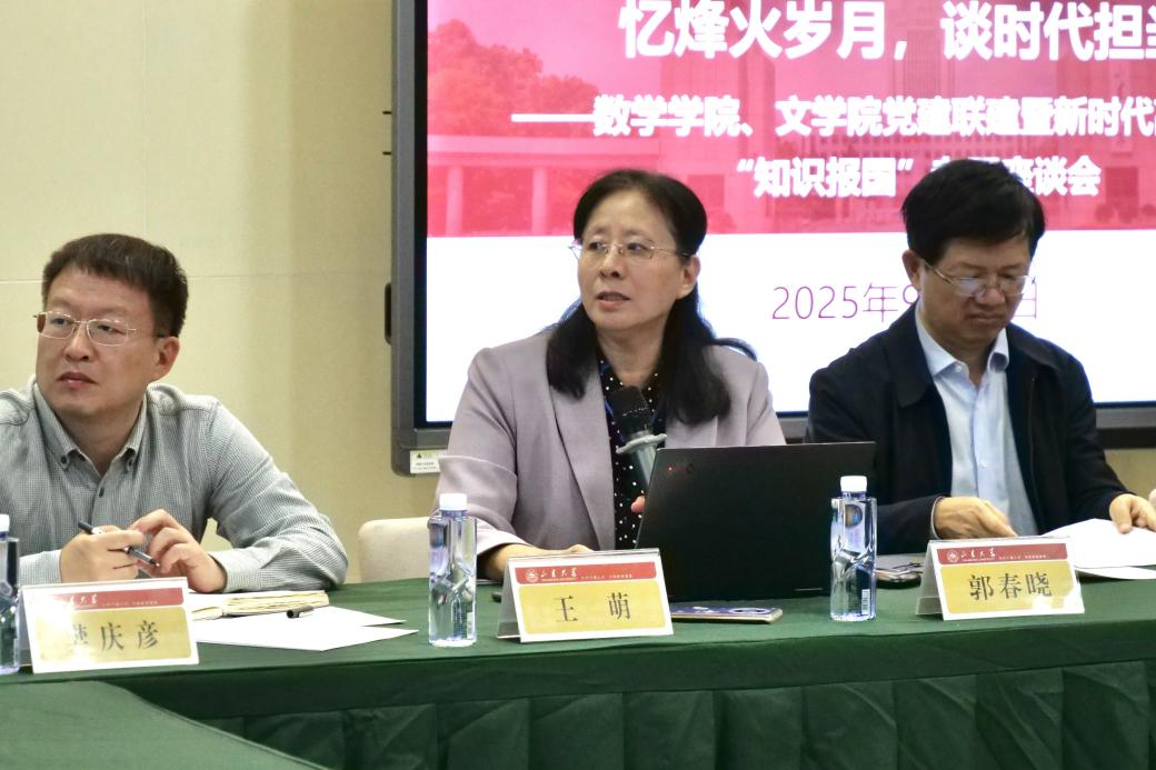 9月28日下午,BB贝博艾弗森官网联合文学院于知新楼A606开展党建联建暨新时代高校教师“知识报国”专题座谈会。BB贝博艾弗森官网党委常委、常务副校长吴臻,文学院党委书记郭春晓,院长黄发有,BB贝博艾弗森官网党委书记王光辉参加会议。会议由BB贝博艾弗森官网党委副书记王苗雨主持。