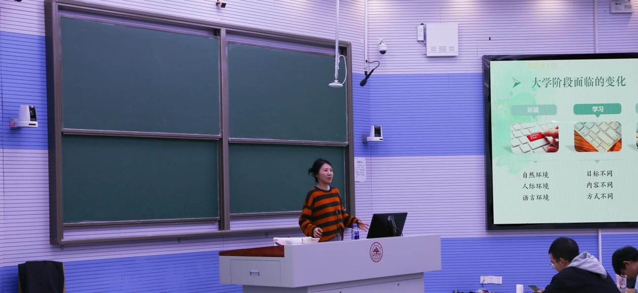 孙笑澄系统介绍了心理健康的判定标准与心理异常的分类,联系实际生活阐述不同心理状态的表现,并给出接纳情绪、调节情绪与积累幸福感等具体心理调节方法。她指出,进入大学后环境、人际及学习模式均发生了转变,希望同学们要学会及时识别情绪,掌握自我调适方法,在面临难以独自克服的困境时应及时向老师、同学或学校心理咨询中心求助,并详细介绍预约与联系方式。