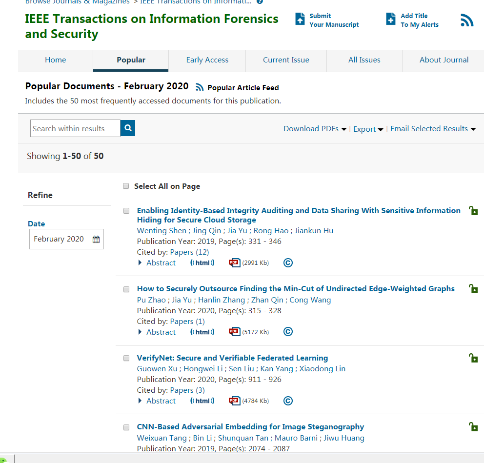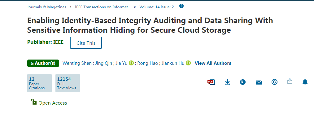 The Research Team Led by Prof. Qin Jing from the School of Mathematics Published Their Research AchievementEnabling Identity-Based Integrity Auditing and Data Sharing With Sensitive Information Hiding for Secure Cloud Storageon IEEE Transactions on Information Forensics and Security (TIFS for short). Prof. Qin Jing is the corresponding author and Shen Wenting, a doctoral student in 2017, is the first author. TIFS is an important international journal in the field of information security and is recommended by China Computer Federation (CCF) as the class-A journal. In 2019, its impact factor was 6.211 and the number of published papers reached 242.