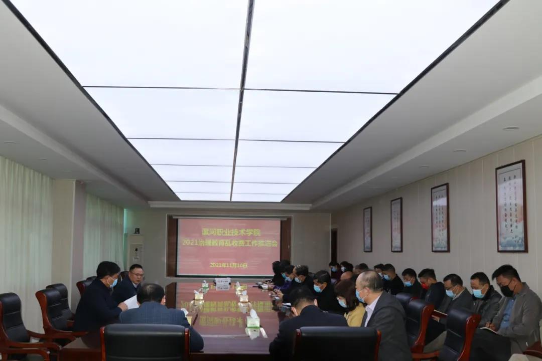 为进一步贯彻落实全省治理教育乱收费工作通知要求,11月10日,漯河职院召开2021年治理教育乱收费工作推进会,就学校治理教育乱收费工作进行安排部署。校党委委员、副校长岳春洲出席并讲话。校属各部门负责同志参加会议。学校财务审计处处长兰涛主持会议。