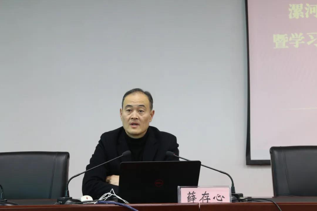 薛存心指出,党的十九届六中全会是在党成立一百周年的重要历史时刻,在党和人民胜利实现第一个百年奋斗目标、全面建成小康社会,正在向着全面建成社会主义现代化强国的第二个百年奋斗目标迈进的重大历史关头召开的重要会议。他围绕一个决议、两个确立、两个结合、三个重大时代课题、四个历史时期的四个伟大成就和四次伟大飞跃、五个历史意义、五个必须做到、十个明确、十条历史经验、十三个领域取得的历史性成就和发生的历史性变革等内容,并和学习贯彻河南省第十一次党代会精神、漯河市第八次党代会精神相贯通,结合一个个历史故事和实践案例,生动形象、深入浅出地阐释全会精神的核心要义。