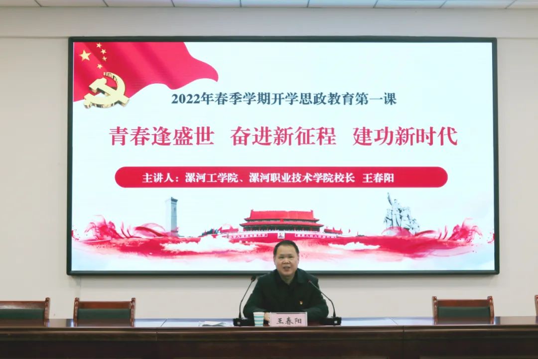 为深入贯彻习近平总书记关于“大思政课”建设的重要指示精神,全面落实《关于新时代加强和改进思想政治工作的意见》,根据省委高校工委、省教育厅以及校党委《关于上好2022年春季开学思政第一课的通知》相关要求,2月28日,校长王春阳教授在招生就业报告厅为学生讲授2022年春季学期开学思政第一课。结合常态化疫情防控要求,10000多名师生通过超星学习通在线同步观看。