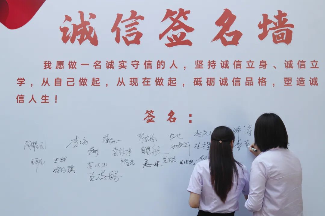 参会人员在“诚信签名墙”签名