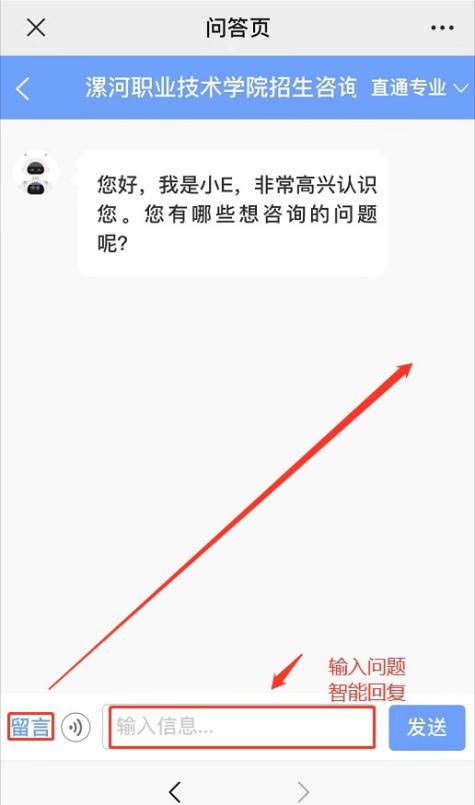 疫情当前,高考延期。为了更好的服务于广大考生、家长朋友们进行招生咨询,了解最新招生资讯,我校招生咨询智能问答系统正式上线,可以24小时在线回答考生和家长的问题,还可以直通专业老师咨询,欢迎大家前来咨询!具体咨询方式如下: