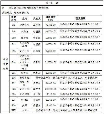(1)采购内容:对开云kaiyun官网入口校内商铺进行招租;