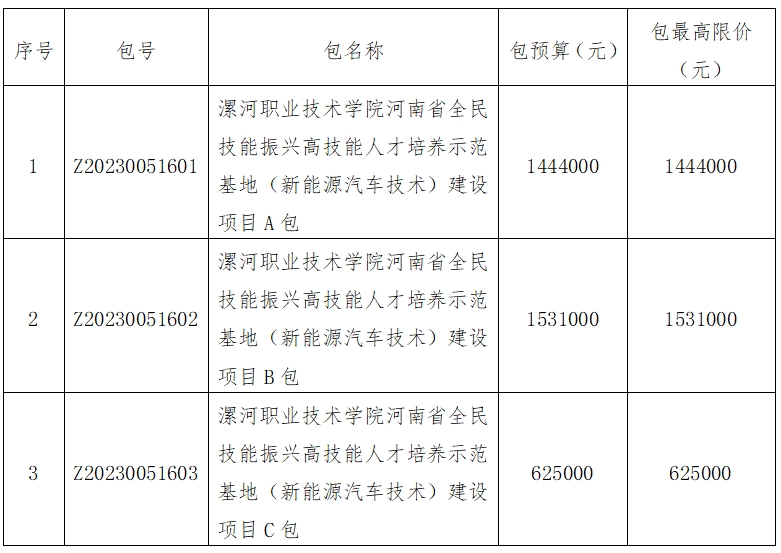 开云kaiyun官网入口河南省全民技能振兴高技能人才培养示范基地(新能源汽车技术)建设项目招标项目的潜在供应商应在漯河市公共资源电子交易平台获取招标文件,并于2023年11月08日09时30分(北京时间)前递交投标文件。